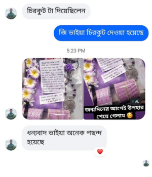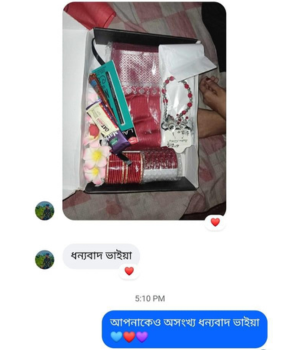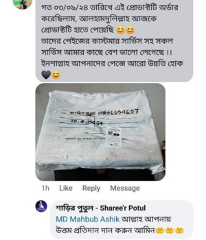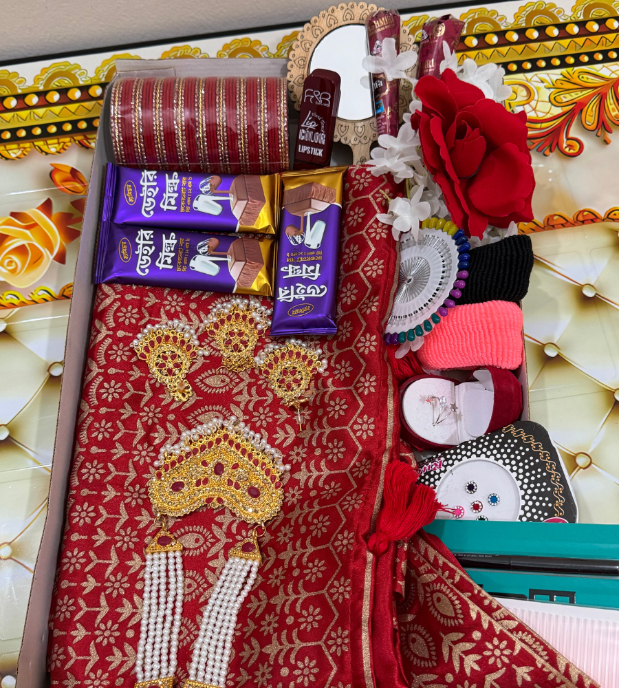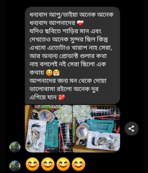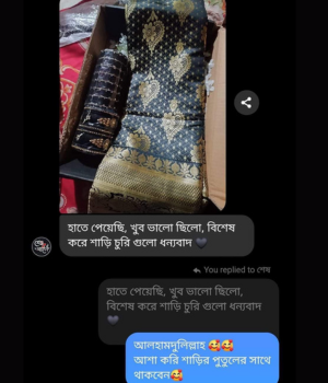 আর সবচেয়ে ভালো বিষয় হলো, প্রতিটি শাড়ির সাথে আমরা একটি ম্যাচিং গিফট প্যাকেজ অফার করি। আপনি চাইলে শুধু শাড়ি নিতে পারেন অথবা পুরো প্যাকেজের সুবিধা নিতে পারেন, যাতে শাড়ির সাথে একসাথে অন্যান্য উপহারও পাওয়া যাবে। আমাদের গিফট প্যাকেজে রয়েছে বিভিন্ন ধরনের প্রিমিয়াম আইটেম যা আপনার প্রিয়জনকে আরো খুশি করবে। এক কথায়, এটি আপনার উপহার দেওয়ার অভিজ্ঞতাকে আরও বিশেষ এবং স্মরণীয় করে তুলবে।